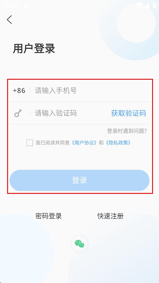 4、在用戶登錄頁面,輸入手機(jī)號(hào),點(diǎn)擊獲取驗(yàn)證碼并輸入驗(yàn)證碼,勾選已閱讀并同意相關(guān)協(xié)議,點(diǎn)擊登錄按鈕。