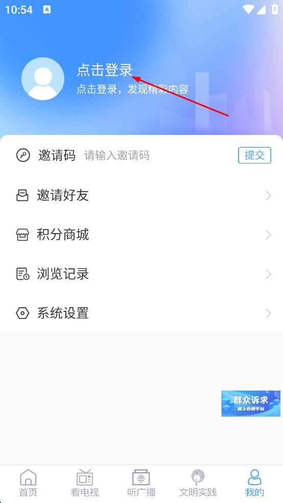 3、在我的頁面,點(diǎn)擊上方點(diǎn)擊登錄選項(xiàng)。