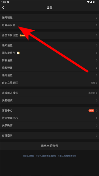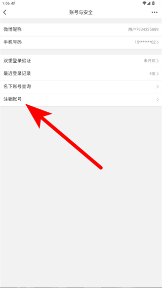 4、在賬號與安全頁面點擊注銷賬號,按照提示完成微博賬戶的注銷操作。