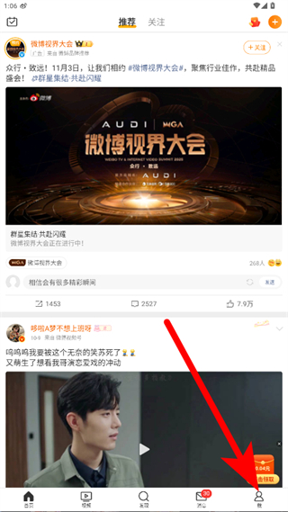 1、打開微博APP,點擊右下角我,進入個人頁面。