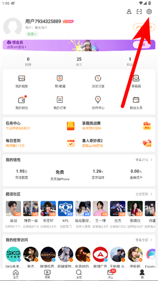 2、在個人頁面中點擊右上角設置圖標,進入設置頁面。