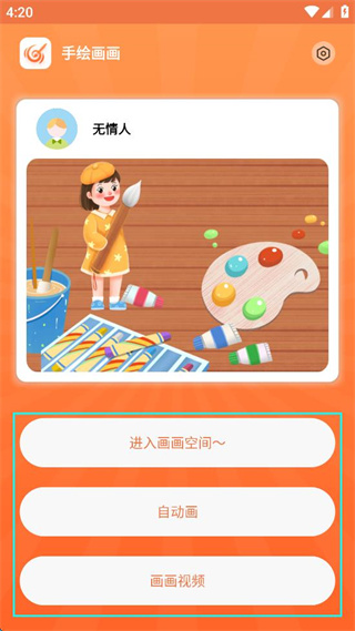 4、登錄后可點(diǎn)擊“進(jìn)入畫畫空間”“自動(dòng)畫”“畫畫視頻”等按鈕,使用相應(yīng)功能。