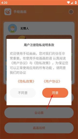 1、在用戶注冊(cè)隱私說(shuō)明條款窗口,點(diǎn)擊“同意”按鈕,進(jìn)入應(yīng)用主界面。