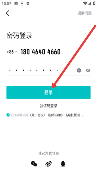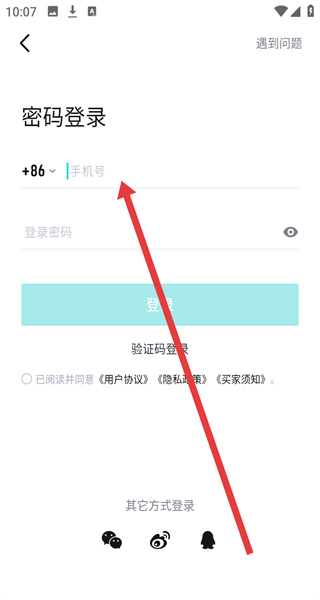 3、在密碼登錄界面,點(diǎn)擊輸入框輸入手機(jī)號(hào)和登錄密碼。
