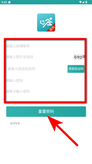 3、在密碼重置頁面,依次輸入店鋪賬號、圖片驗(yàn)證碼、短信驗(yàn)證碼、新密碼及確認(rèn)新密碼。