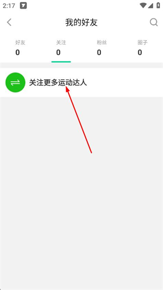 3、在我的好友頁(yè)面點(diǎn)擊關(guān)注更多運(yùn)動(dòng)達(dá)人,進(jìn)入用戶推薦頁(yè)面。