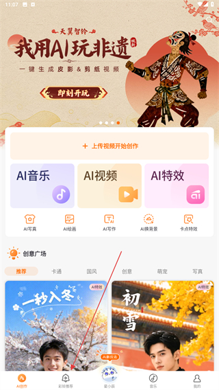 1、新增【音樂智能體】,解鎖AI音樂、AI成片、AI特效、AI搜索等創(chuàng)意玩法;