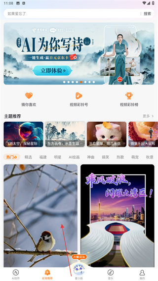 1、視頻彩鈴首頁新增主題推薦模塊,發(fā)現(xiàn)更多好玩主題;