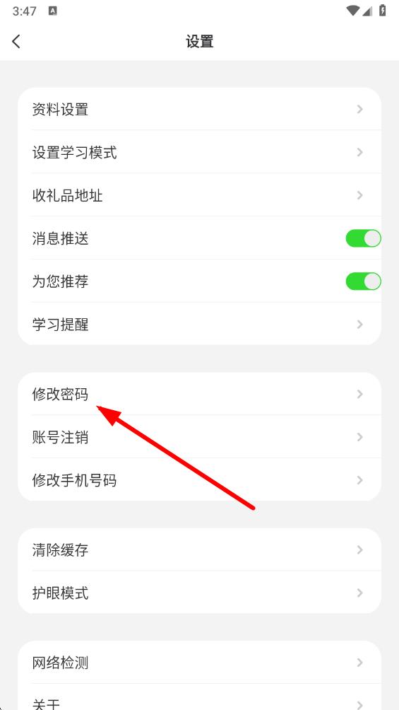 3、在設(shè)置界面里,找到并點擊修改密碼選項,進入修改密碼頁面。