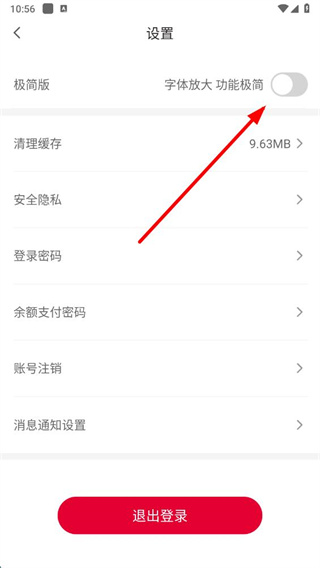 3、在設置界面中,找到極簡版字體放大功能極簡的開關,點擊開啟該功能即可將字體調(diào)大。