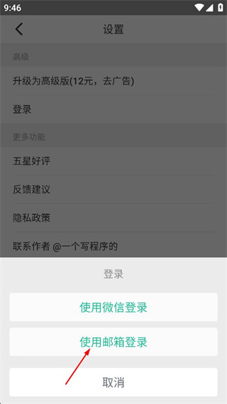 3、在登錄方式選擇窗口中點(diǎn)擊使用郵箱登錄,進(jìn)入郵箱登錄頁面。
