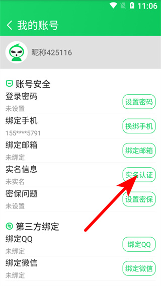 3、在我的賬號界面,點擊實名認證選項,進入實名認證頁面。