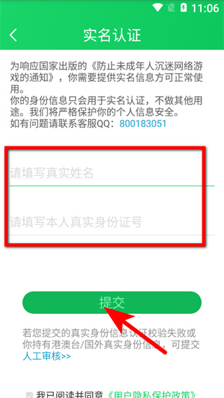 4、在實名認證頁面,輸入真實姓名和身份證號后點擊提交按鈕,即可完成實名認證操作。