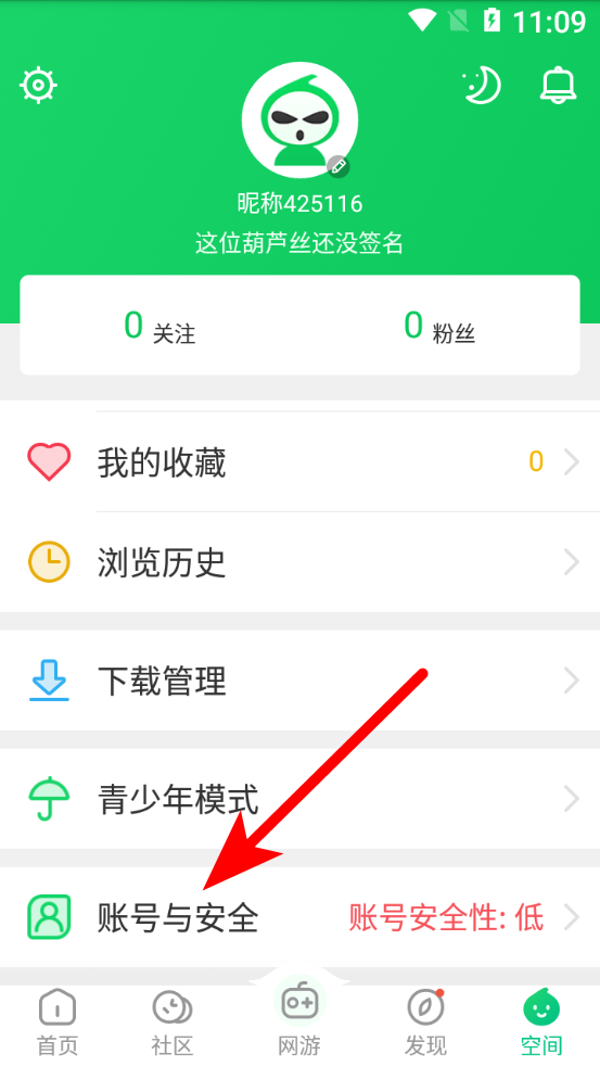 1、在葫蘆俠首頁,點擊右下角空間選項,進入個人空間頁面。