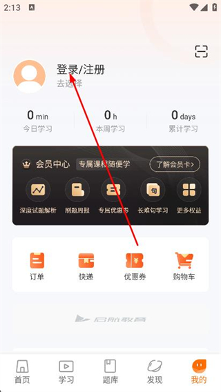 2、在我的頁(yè)面中,點(diǎn)擊上方登錄/注冊(cè)選項(xiàng)。