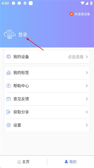 2、進(jìn)入“我的”界面后點(diǎn)擊“登錄”按鈕。