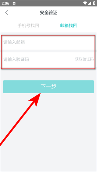 3、若選郵箱找回,輸入郵箱地址和驗(yàn)證碼,點(diǎn)擊下一步,后續(xù)按提示完成密碼重置。