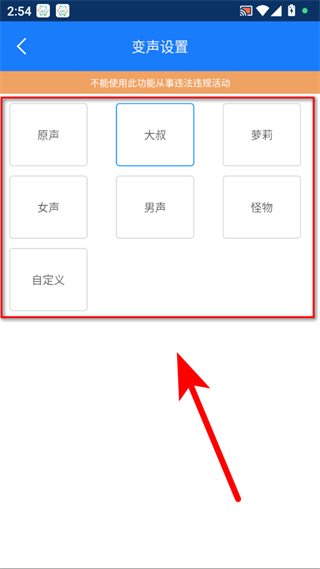 4、在變聲設(shè)置頁面選擇需要的聲音類型,如蘿莉、女聲、男聲、怪物等,即可完成EV錄屏的變聲設(shè)置操作。