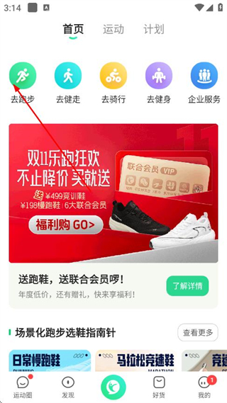1、打開咕咚APP,在首頁點擊去跑步選項。
