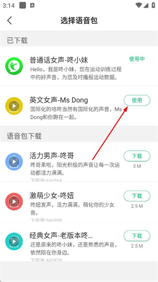 5、在選擇想要使用的語音包,點擊使用,即可完成語音包聲音的更換。