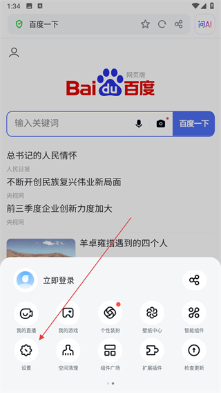 2、在彈出的菜單中,點擊設(shè)置選項,進(jìn)入設(shè)置頁面。