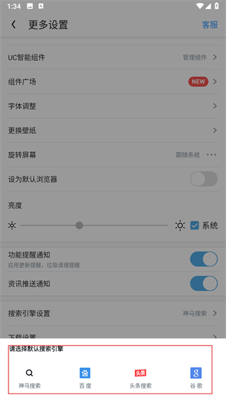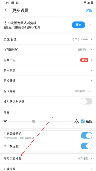 3、進(jìn)入更多設(shè)置頁面后,點擊搜索引擎設(shè)置選項。