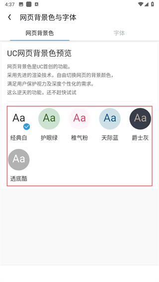 4、在網(wǎng)頁背景色與字體頁面,選擇想要的背景顏色。