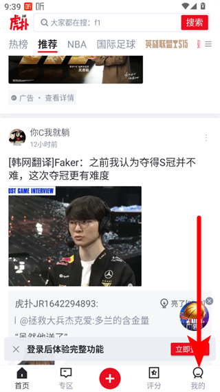 1、啟動虎撲APP,進入到首頁中,點擊導航欄中我的圖標。