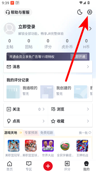 2、在個人中心頁面,點擊右上角設置圖標,進入設置頁面。