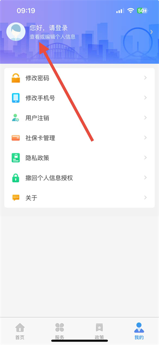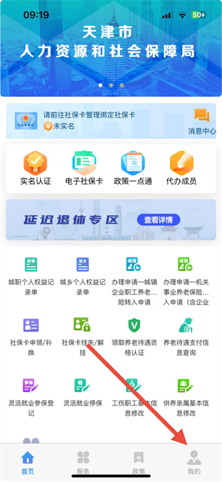 1、打開天津人力社保app,點(diǎn)擊右下角我的選項(xiàng),進(jìn)入個(gè)人頁(yè)面。