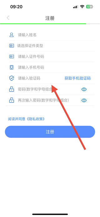 4、在注冊(cè)頁(yè)面,依次輸入個(gè)人信息,設(shè)置密碼,同意隱私政策后,點(diǎn)擊注冊(cè)按鈕完成賬號(hào)注冊(cè)。