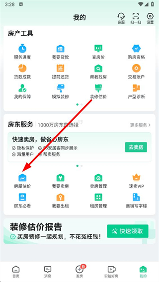 2、在個(gè)人頁(yè)面的房東服務(wù)板塊中,找到房屋估價(jià)選項(xiàng)并點(diǎn)擊。