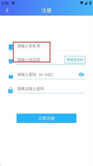 2、在注冊頁面,輸入手機號,并填寫收到的驗證碼。