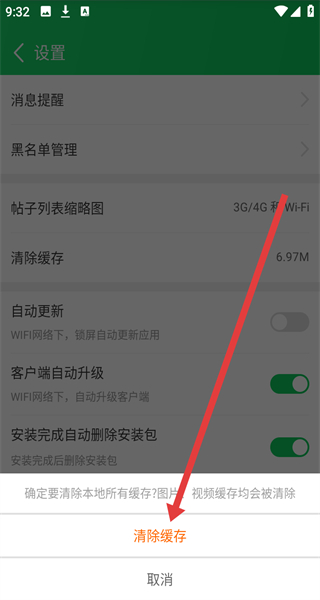 3、在設(shè)置頁面點擊“清除緩存”,彈出確認(rèn)清除緩存彈窗。