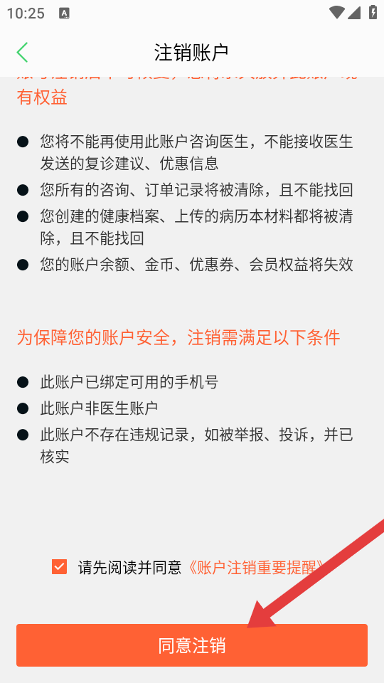 4、閱讀注銷說明后,勾選同意協(xié)議,點(diǎn)擊同意注銷,完成賬號(hào)注銷。