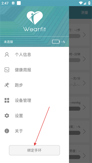 2、在彈出的菜單中,點(diǎn)擊綁定手環(huán)選項(xiàng)。