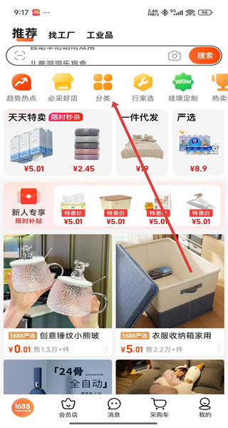 1、打開1688APP,點擊“分類”,進入分類頁面。