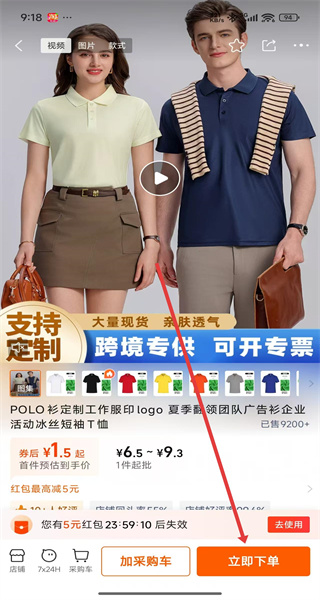3、在商品詳情頁點擊“立即下單”,進入商品規(guī)格選擇頁面。