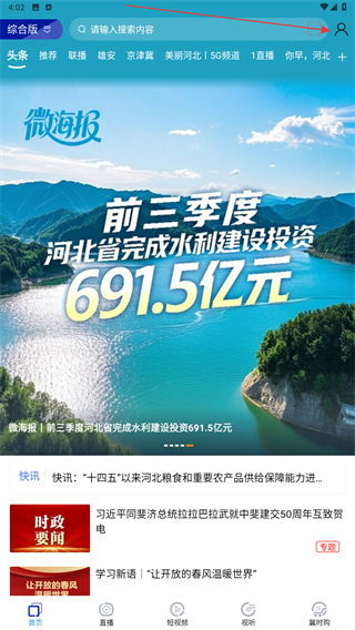 1、啟動河北廣播電視臺的應用,進入首頁點擊右上角人像圖標。