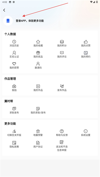 2、進入個人主頁內(nèi),點擊登錄APP,體驗更多功能的區(qū)域。