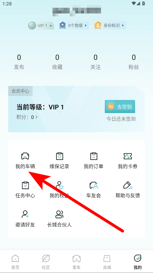 2、在個(gè)人界面里,點(diǎn)擊我的車輛選項(xiàng),進(jìn)入車輛管理頁(yè)面。