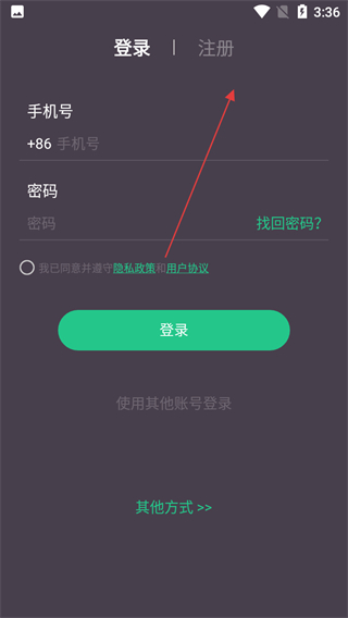 2、在登錄頁面點(diǎn)擊注冊選項(xiàng),進(jìn)入注冊界面。