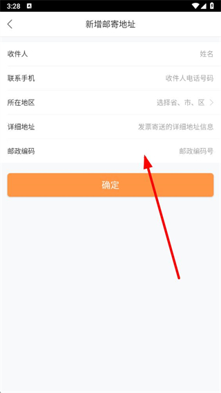 4、進(jìn)入新增郵寄地址頁面,填寫信息后,點(diǎn)擊確定即可添加郵寄地址。