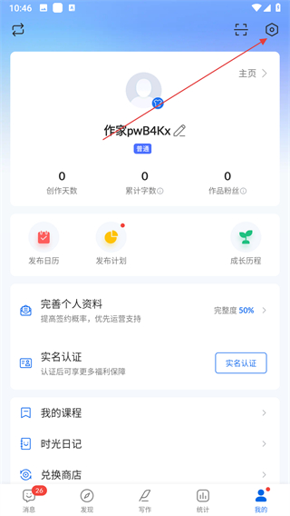 2、在我的頁面,點擊右上角的設(shè)置圖標。