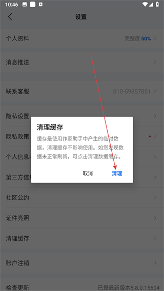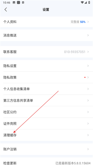 3、在設(shè)置頁面,點擊清理緩存選項。