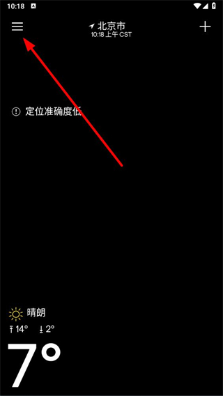 1、打開雅虎天氣app,點(diǎn)擊界面左上角的菜單圖標(biāo),展開側(cè)邊欄。