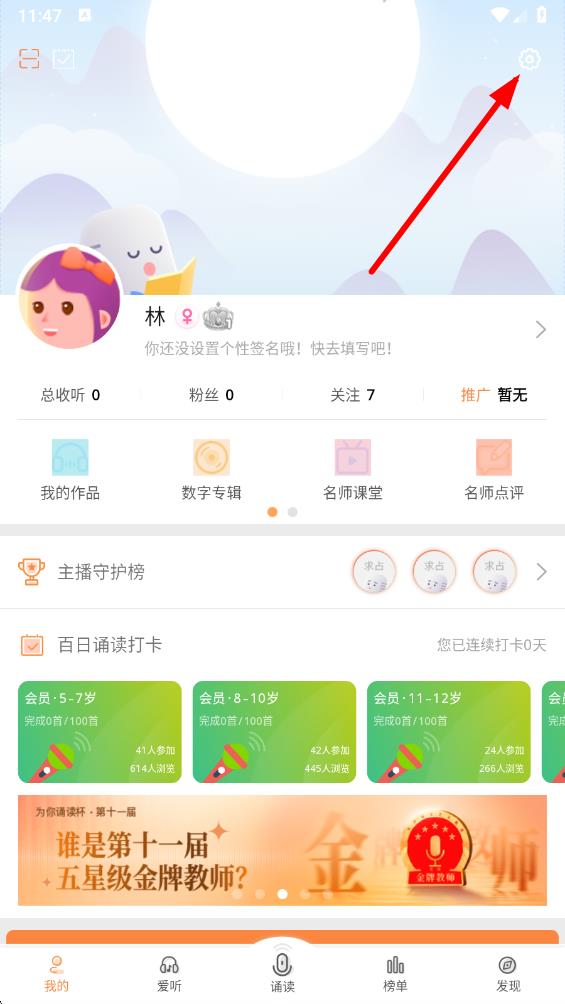 1、打開為你誦讀app,點擊底部導航欄中的我的選項,進入個人頁面。