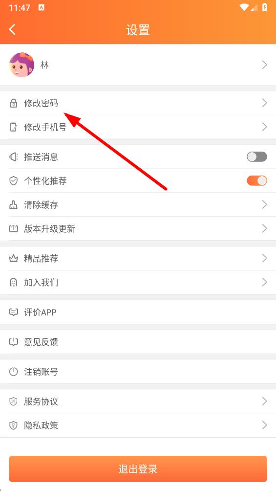 3、在設置界面里,找到并點擊修改密碼選項,進入修改密碼頁面。