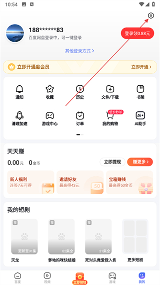 2、在我的頁面,點(diǎn)擊右上角的設(shè)置圖標(biāo)。