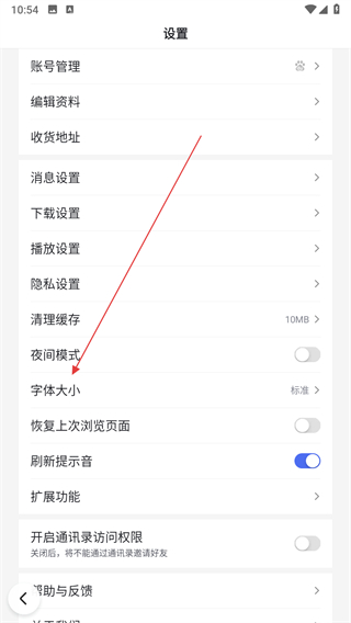 3、在設(shè)置頁面,點(diǎn)擊字體大小選項(xiàng)。